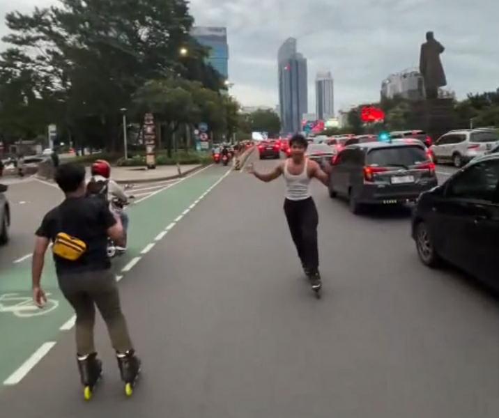 VIRAL! Sekelompok Pemain Sepatu Roda Terobos Jalan Protokol di Tengah Macet Ibu Kota