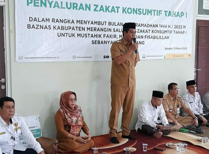 Reportika.co.id || Merangin, Jambi – Wabup Merangin Nilwan Yahya menyalurkan zakat konsumtif tahap satu, untuk 9.083 orang Mustahik Fakir, Miskin dan Fisabilillah. Penyaluran zakat konsumtif tersebut, berlangsung di Sekretariat Baznas Merangin, Senin (13/3).