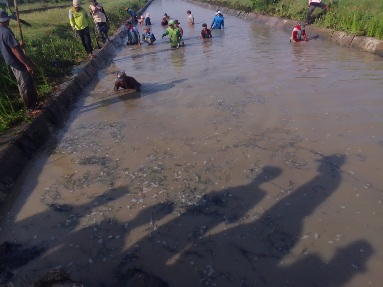 Ketika awak media mengkonfirmasi ke petugas atau mantri pengairan yang ada di lokasi, Arif mengatakan kegiatan tersebut dilaksanakan sepanjang 4 km, dan dibantu oleh para petani.