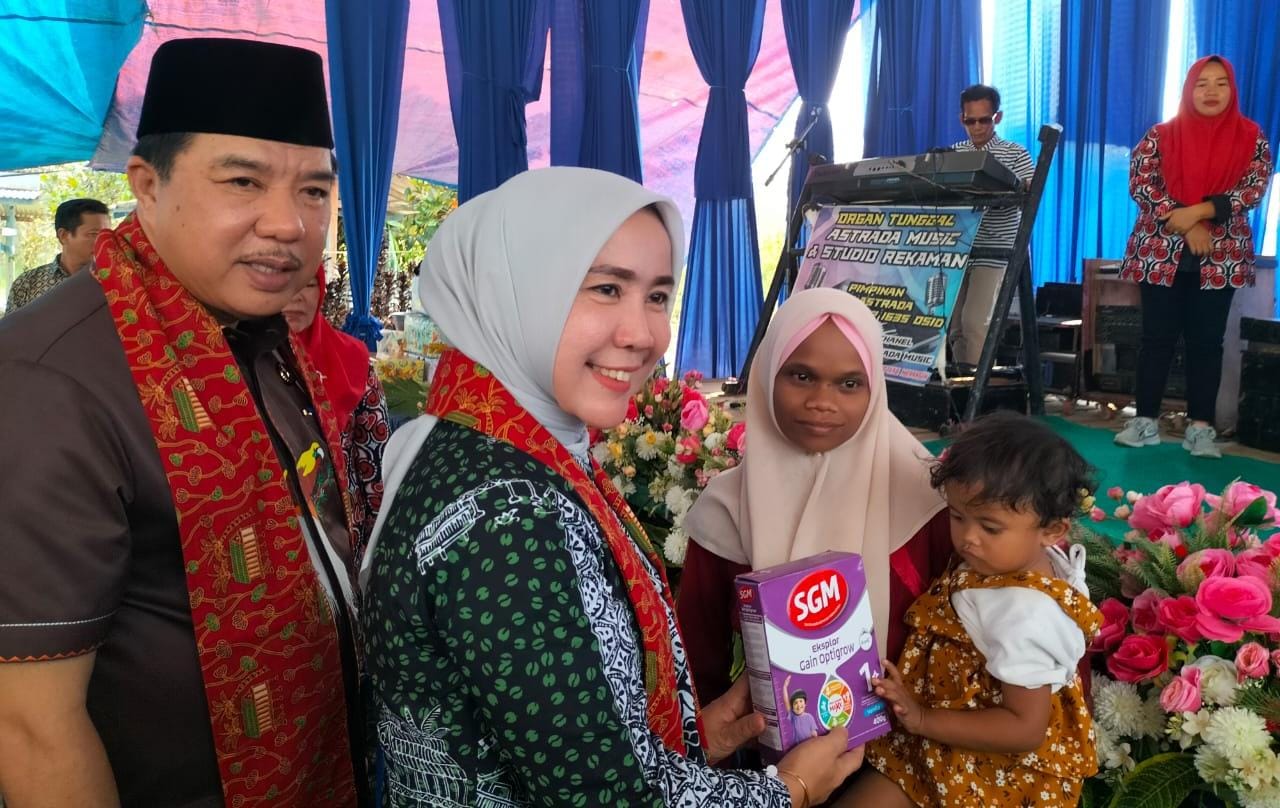 Pada kesempatan itu, Pj Bupati bersama Ketua TP PKK Merangin menyalurkan Pemberian Makanan Tambahan (PMT) kepada seorang balita Stunting dari Desa Pukau Tujuh Kecamatan Pamenang Barat.